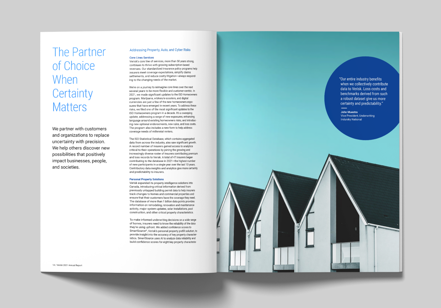 Lead designer for Verisk on the client side, collaborating and coordinating with our agency, Monigle, on the visual identity. Oversight of all the design aspects of the rebranding project. Member of the brand leadership team, which also included the CEO, CMO, and VP of Brand.