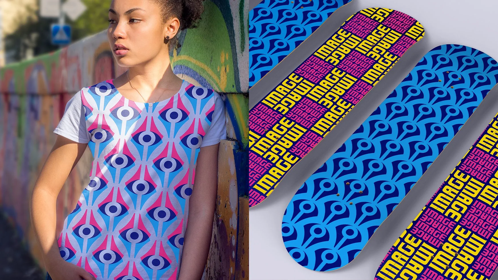A variety of branded patterns can be applied to promotional collateral and premium items.